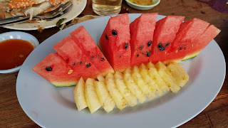 Kemudiannya kami dihantar ke sebuah restoran tempatan untuk menikmati makan tengahari. Seperti yang dijangka, makan tengahari kali ini pun cukup banyak lauk pauk.  Habis sahaja makan tengahari kami dihidangkan pula dengan pulut mangga dan durian Thai yang sangat sedap.