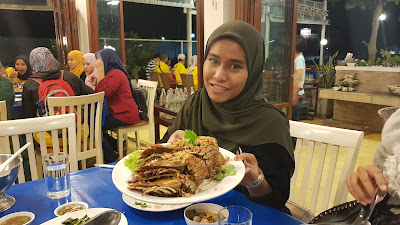 Habis sahaja shopping kami di bawa ke tingkat atas di mana terdapatnya restoran makanan laut yang halal milik orang Islam.  Seperti biasa, makanan yang dihidangkan terlalu banyak sehingga kami tidak lagi mampu untuk menghabiskannya.  Selesai makan kami pulang ke hotel.