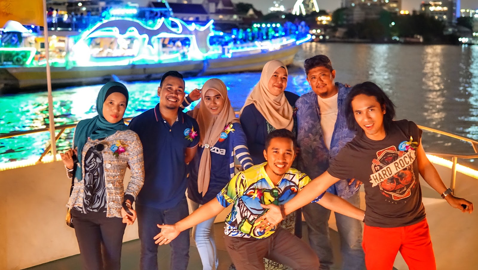 Setibanya kami di Bangkok, kami singgah dulu bersolat di sebuah masjid di tengah-tengah bandaraya Bangkok.  Di Bangkok ini tidak begitu susah untuk mencari masjid kerana umat Islamnya agak ramai.  Selesai bersolat, kami menuju ke Chao Praya Princess Cruise untuk menikmati makan malam bersama-sama Kumpulan A.  Sebelum menaiki kapal kami diminta untuk bergambar bersama dengan penyambut tetamu cruise tersebut.